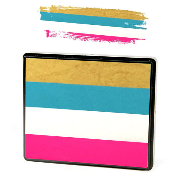 Rainbow cakes are perfect for base work for a huge range of designs. They are used with a flat brush or sponge and create beautifully blended designs all with one stroke. Rainbow Cake colour combinations are designed to highlight and low light all with one container. Silly Farm has over 20 different combinations of rainbow cakes to help speed up your painting with the added benefit of helping you create amazing designs. You can get from 100 to 500 applications per rainbow cake.